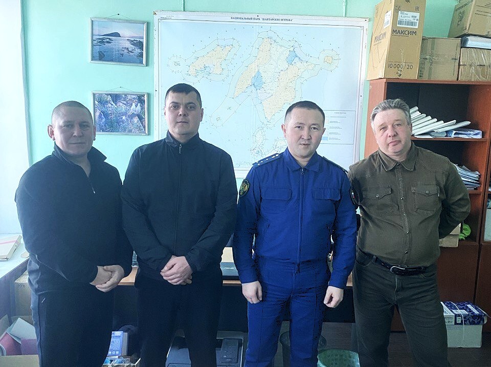 В Николаевске-на-Амуре, где располагается офис национального парка «Шантарские острова», во время информационной встречи с и.о. межрайонного природоохранного прокурора Амурской бассейновой природоохранной прокуратуры Уланбеком Нажмитдиновым, сотрудники охраняемой территории рассказали об истории освоения северного архипелага, обменялись информацией о состоянии популяции китов Охотского моря, о возможных видах нарушений, связанных с морскими млекопитающими и обсудили пути их решения.