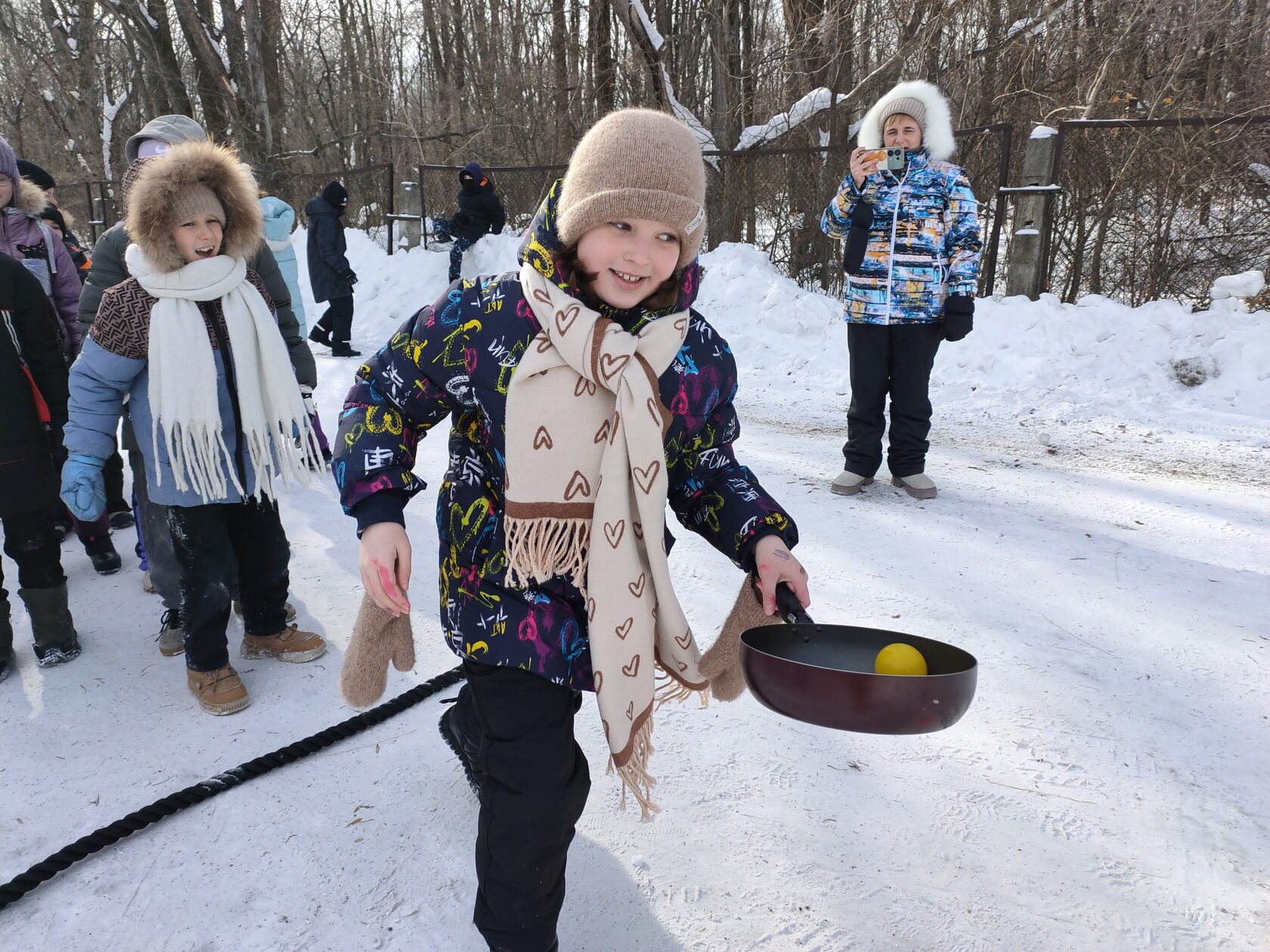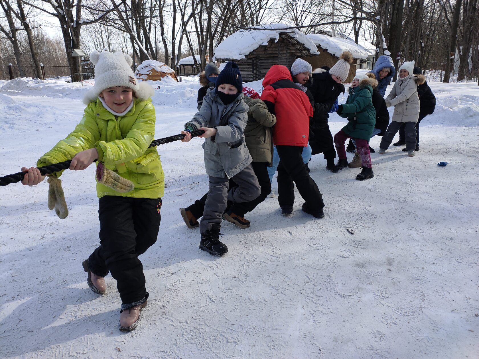 Когда все задачки для ума были решены, настал час потехи: высыпали все гурьбой на улицу, стали в весёлые игры играть – бегали верхом на венике, сковородку с «блином» на ней туда-сюда переносили, канат перетягивали!