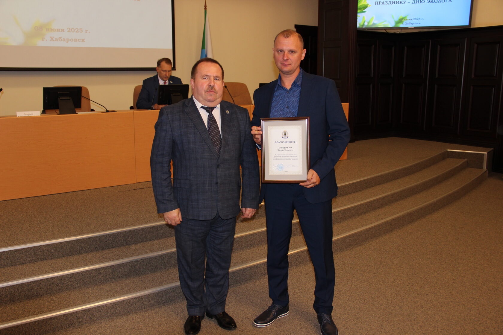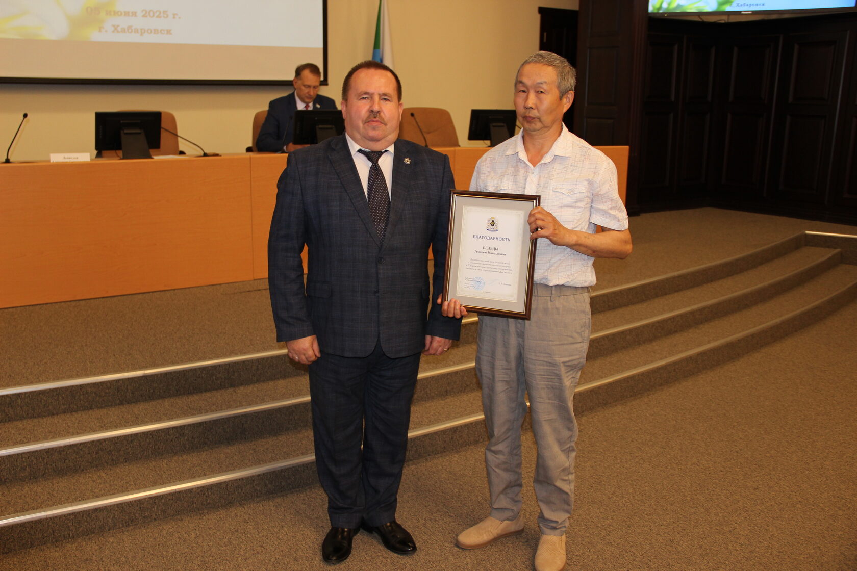 За высокие результаты и достижения в сфере природопользования и охраны окружающей среды благодарность губернатора Хабаровского края получили: Алексей Николаевич Бельды, Виктор Сергеевич Блюденов и Антон Альбертович Фетисов.