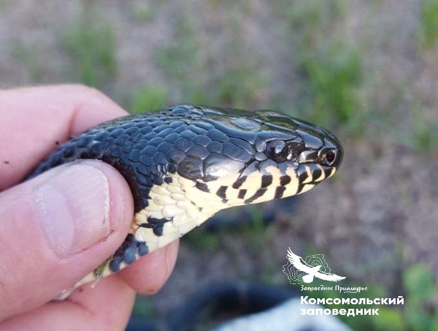 Кстати, на фото виден круглый зрачок – это характерный признак неядовитой змеи Дальнего Востока России.