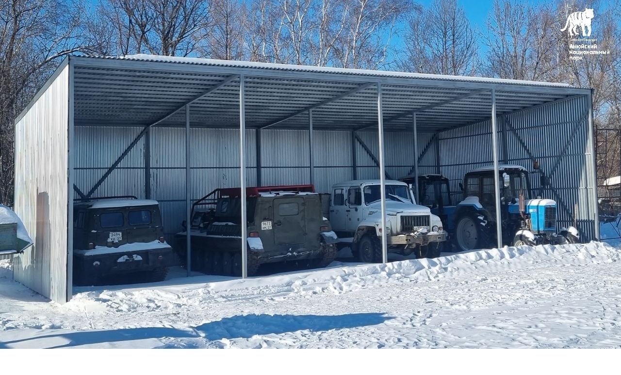 При поддержке благотворительного Фонда «Сохранение экологических систем Дальнего Востока и Сибири», здесь завершено строительство современного навеса для служебного автотранспорта, который активно используется при проведении рейдовых заданий и биотехнических мероприятий в национальном парке «Анюйский» им. В.К. Арсеньева.